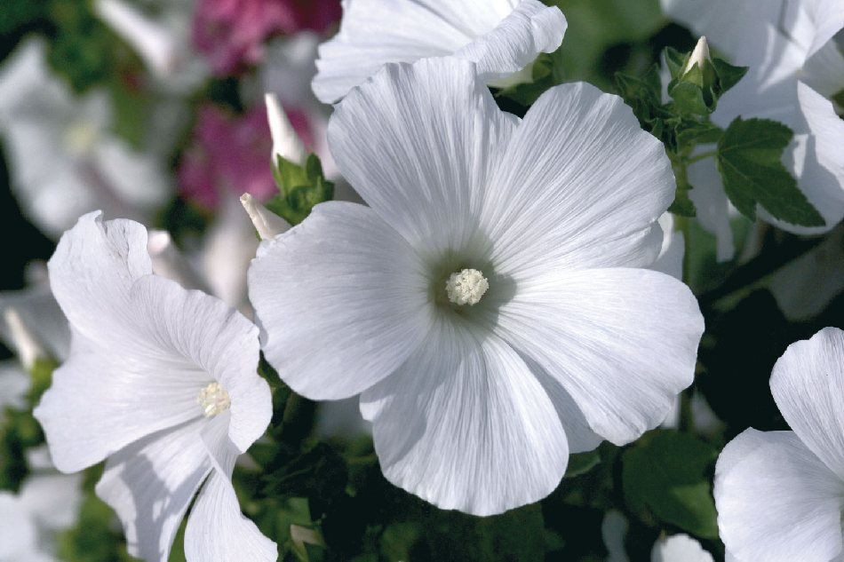 - «Мон Блан» (Lavatera trimestris ‘Mont Blanc’) – чисто-белая