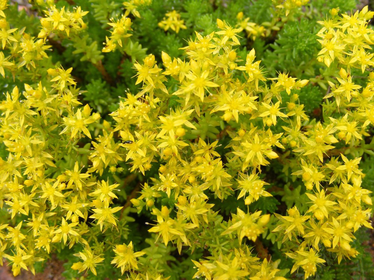 Почвопокровные очитки – это идеальные растения для края дорожек. Они образуют плотные коврики высотой 5–10 сантиметров, абсолютно не боятся вытаптывания, могут расти даже в швах между плитками. Очиток едкий (Sedum acre) цветёт жёлтыми звёздочками в июне, очиток белый (Sedum album) – белыми в июле. Корневая система поверхностная, не разрушает бордюры. Очитки засухоустойчивы, не требуют полива даже в самое жаркое лето. Зимуют без укрытия, весной быстро восстанавливаются. Единственное – они могут агрессивно расползаться, но у дорожек это скорее плюс, чем минус.