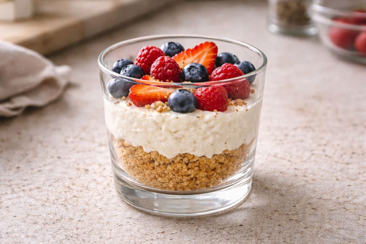 Как готовить: Творог взбейте с сыром (или сметаной) и сахарной пудрой до однородности. Добавьте ванильный экстракт. Печенье поломайте на кусочки. В стаканы выкладывайте слоями: крошка печенья, творожный крем, ягоды (или джем). Повторите слои. Уберите в холодильник минимум на час, а лучше на ночь.