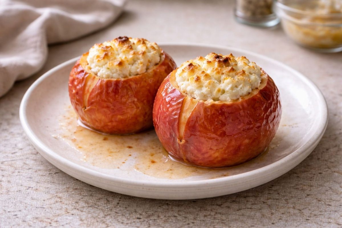 Классические запечённые яблоки хороши, но с творожной начинкой они становятся сытнее и интереснее. Творог с изюмом, орехами и корицей внутри горячего яблока — это очень уютный десерт, особенно в холодное время года.