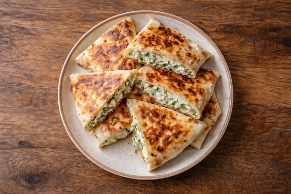 Это мой любимый «ленивый хачапури». Лаваш, творог, зелень, сковородка — и через пять минут у вас горячая, хрустящая, сытная штука. Творог внутри становится мягким, почти кремовым, зелень даёт свежесть, а корочка хрустит. Можно добавить тёртый сыр для большей сочности.