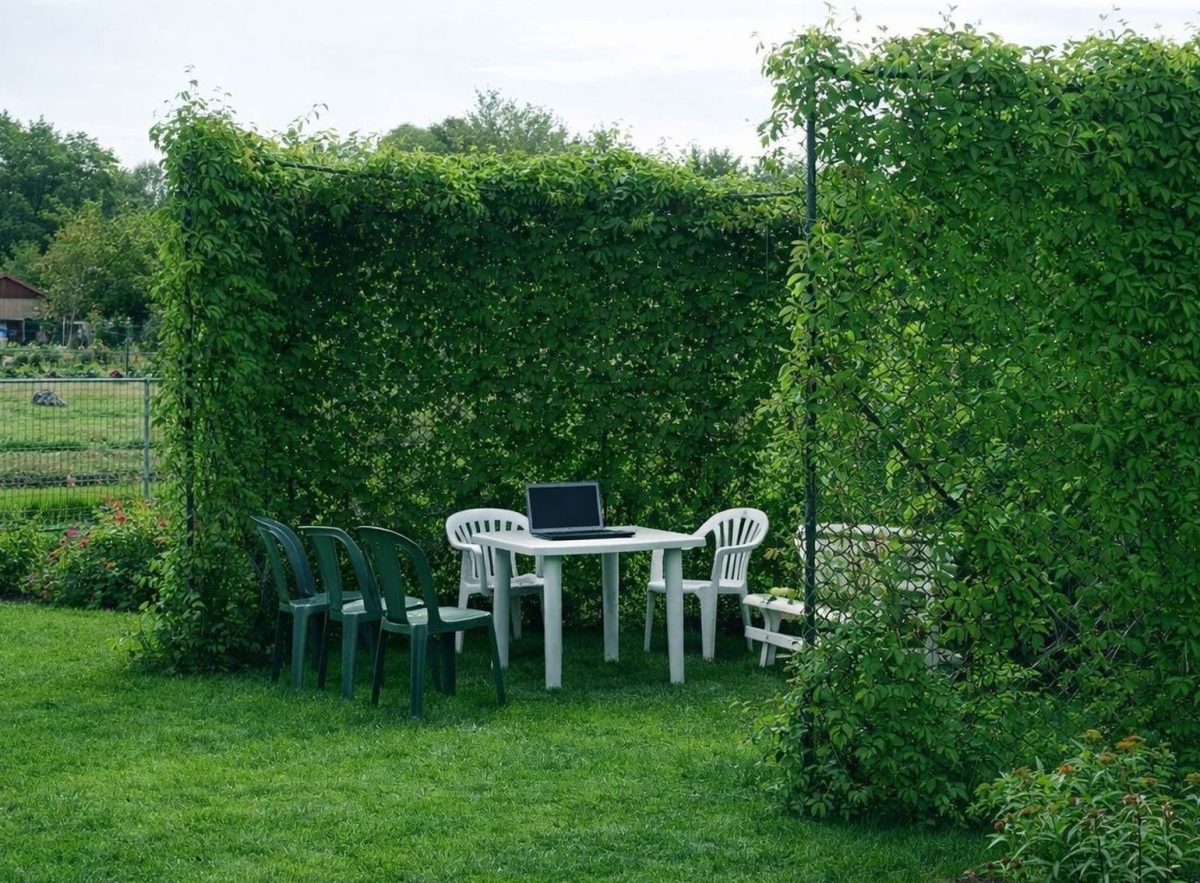 - Зоны уединения, например, зеленые кабинеты, отделенные от окружающего мира живыми «ширмами» изгородей и вьющихся по вертикальным конструкциям лиан.