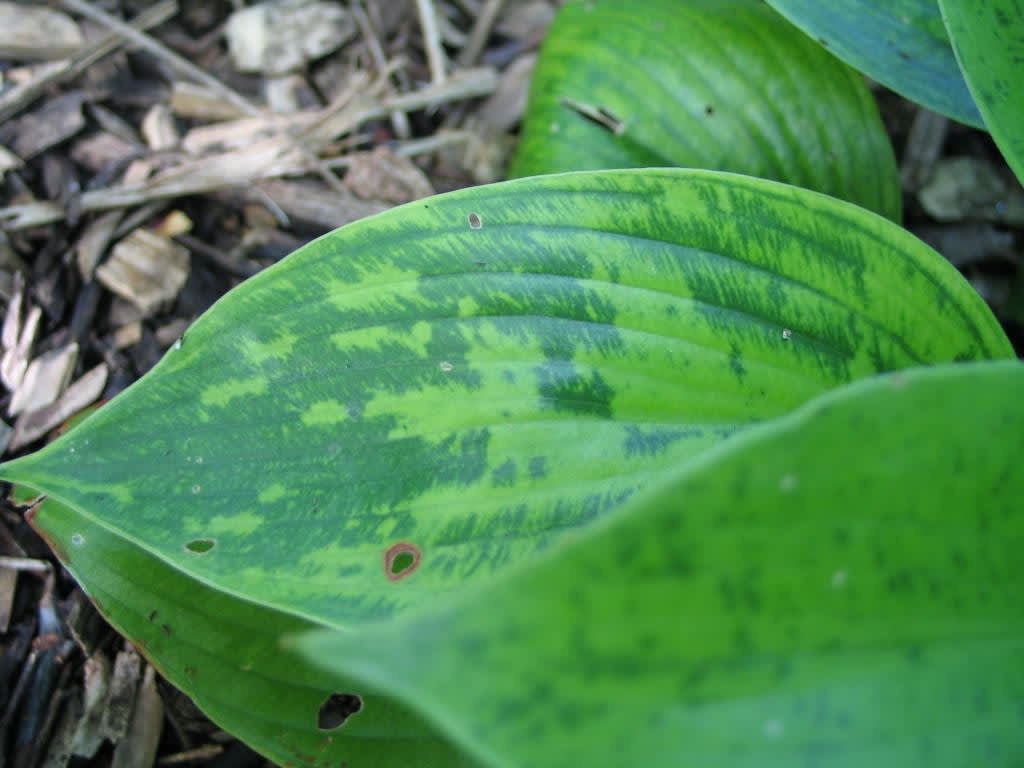 Коварный вирус хосты X (HVX) проявляется на листьях в виде хаотичного мозаичного рисунка желтого цвета. На пестрых листьях он буде иметь несколько оттенков, которые перетекают друг в друга. После этого наблюдается быстрое отмирание листвы. Этот опасный вирус распространяется через ваши руки, садовые инструменты и насекомыми-вредителями.