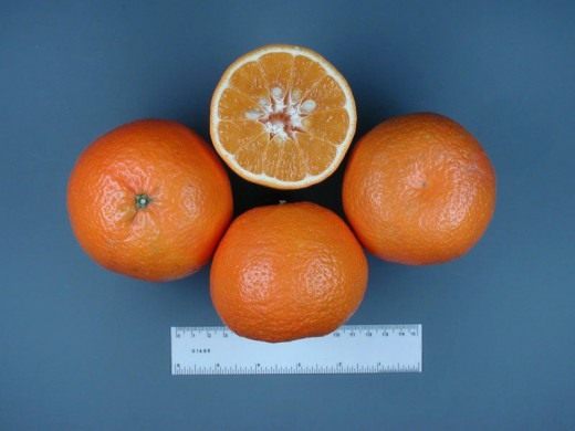 Танжело ещё много разных. Есть, например Bay Gold, выведенный в 1993 г. в Новой Зеландии из Семинола и клементина. Есть Wekiwa, канадский, со светлой кожицей, результат повторного скрещивания танжело с грейпфрутом, вот такой: