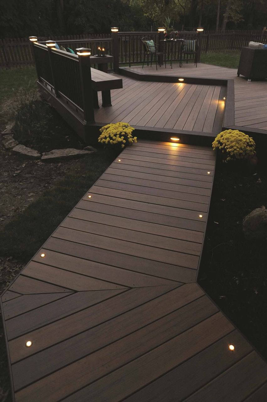 Если ваша садовая дорожка выполнена из дерева, то в него легко можно монтировать элементы освещения.