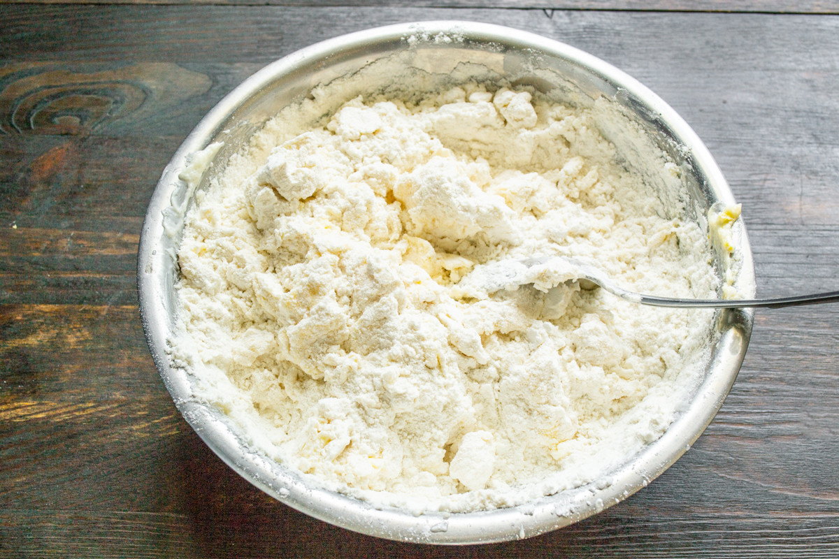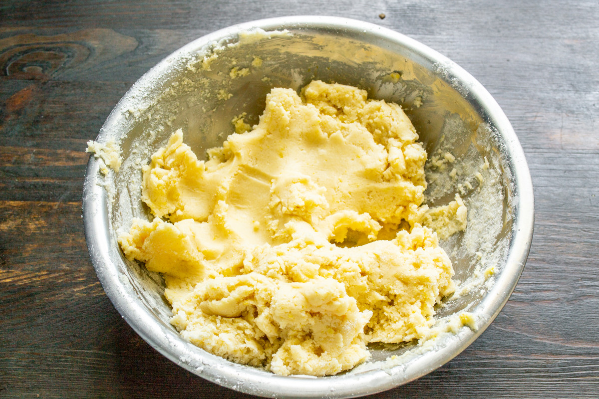 Смешиваем тесто сначала ложкой, затем вручную. Собираем тесто в шар, убираем в холодильник на 15-30 минут. Если тесто сильно остынет, то его будет трудно раскатывать.