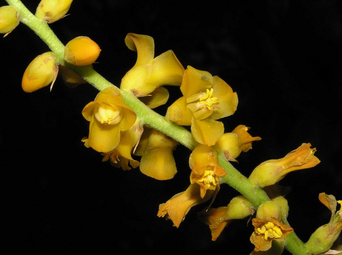 Диккия коротколистная (Dyckia brevifolia) – красивое и очень нарядное растение с собранными в плотные розетки треугольными листьями длиной до 12 см при ширине всего до 3х см. Их заостренный кончик, пильчатый край, шипы-крючки украшают растение. Толстые прямые цветоносы облиственны, венчаются колосками соцветий, которые могут быть как плотными, так и достаточно рыхлыми. Цветки окрашены в солнечный желтый тон.