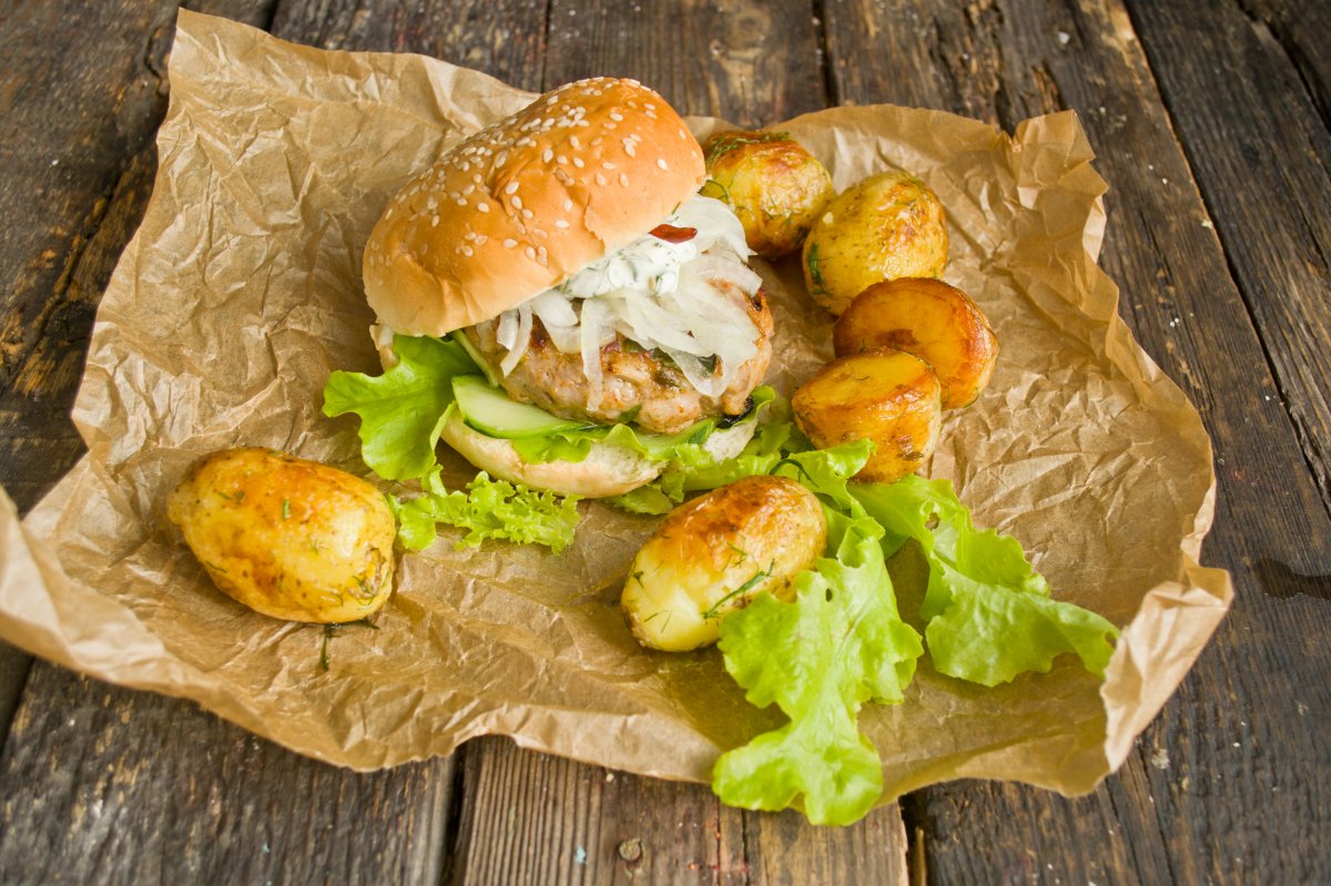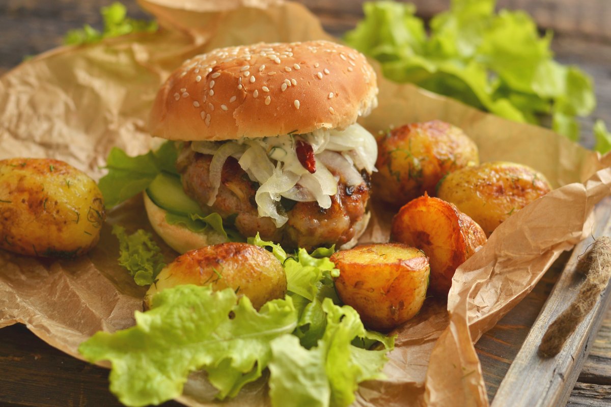 Домашние бургеры с котлетой, соусом и жареной картошкой можно довольно быстро приготовить в домашних условиях из простых и доступных продуктов. Булочки можно испечь самому, однако в целях экономии времени лучше дать заработать пекарям, ведь в наше время подобная выпечка продаётся на каждом углу. Секрет вкусного домашнего бургера — в правильном сочетании мяса, соуса и овощей. В этом рецепте удачно сошлись котлеты с маринованным лучком и свежими овощами, а румяная картошка с укропом и чесноком дополнила основное блюдо. В общем, дерзайте и — приятного аппетита!