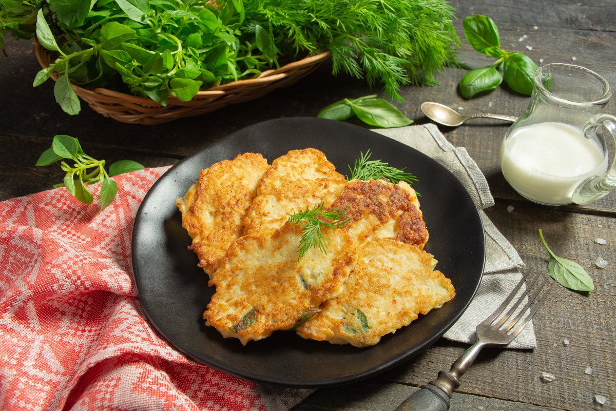 Подаём картофельные драники с курицей на стол горячими, посыпаем свежей зеленью — лучком, укропом. Со сметаной очень вкусно, а с остывшими драниками можно приготовить вкусный бутерброд.