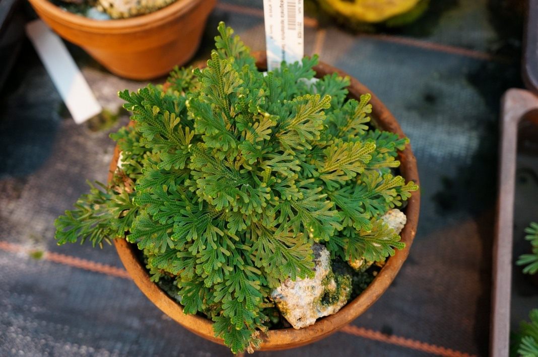 - Селагинелла швейцарская (Selaginella helvetica) формирует рыхлые дернинки из змеевидных, густо облепленных курчавыми листьями тонких веточек. Листья расположены в строгом порядке, благодаря чему рисунок куртины кажется поразительно графичным. Выделяется эта селагинелла и более светлым окрасом, и перпендикулярно отстоящими от побегов листьями.