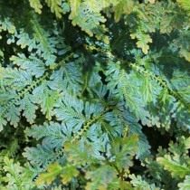 - Селагинелла крючковатая (Selaginella uncinata) красуется роскошным сизо-голубым окрасом кружевной зелени, которая кажется действительно драгоценной благодаря очень плотному расположению «пушистых» побегов в дернинке и миниатюрным хвоевидным листьям.