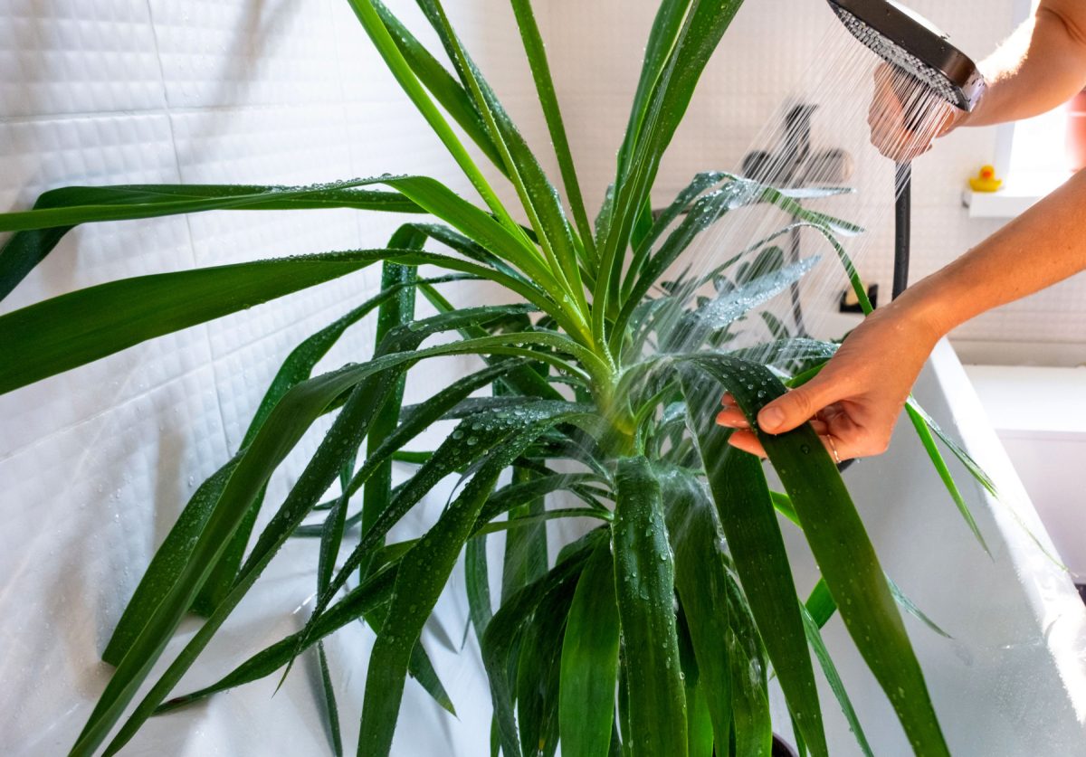 Драцены и кордилины с их длинными узкими листьями особенно нуждаются в душе. Кончики листьев у них часто подсыхают именно из-за сухого воздуха и пыли. Регулярный теплый душ замедляет этот процесс. Горячий душ стимулирует рост новых листьев из центра розетки.