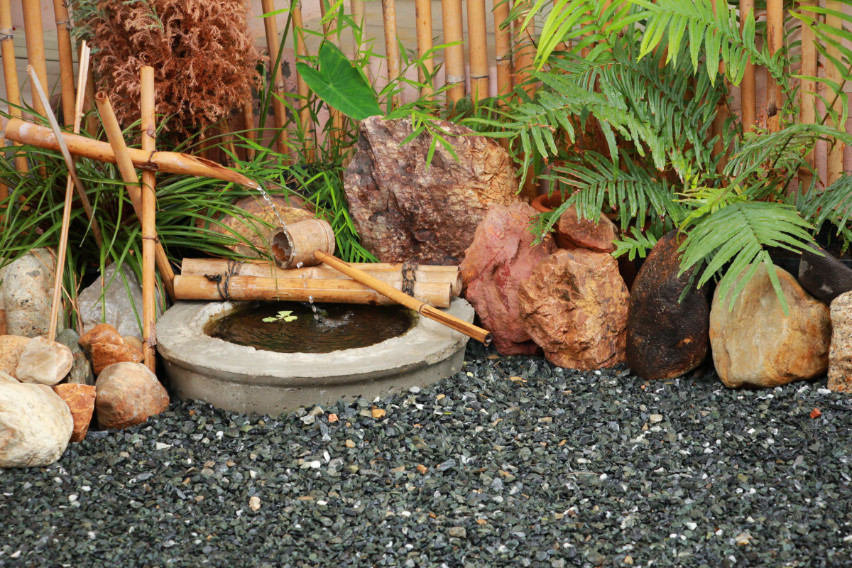 Монументальный фонтан с чашей и скульптурами из натурального камня на стандартном участке представить сложно. А вот небольшой кованый декоративный фонтан или просто бьющие вверх струи — напротив. Главное, не ошибиться со стилем и подобрать для фонтана правильное окружение. Например, для японского сада идеальным решением будет бамбуковый сикаодоси. Журчание и звук падающей воды замечательно дополнят зону отдыха, создавая приятный умиротворяющий эффект.