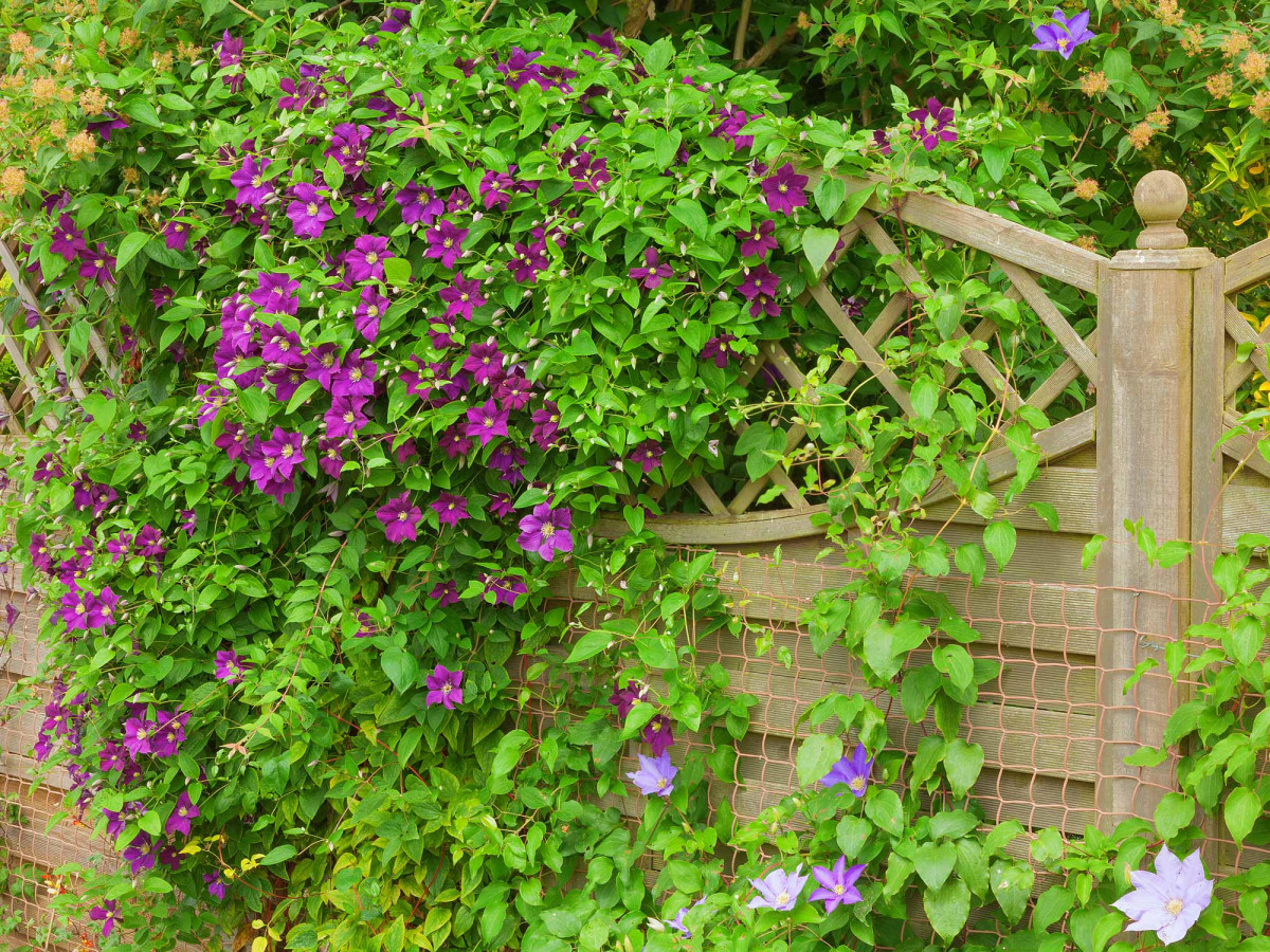 «Неугодный» забор можно скрыть или поработать над цветом и фактурой, если позволяет материал. Чтобы спрятать слишком простую, неинтересную или неказистую конструкцию используют свободное фоновое озеленение, живые изгороди, плетущиеся растения. Чтобы получить эффект поскорее, высаживают быстрорастущие виды. А на отдельных небольших участках на заборе можно развесить кашпо с ампельными растениями.