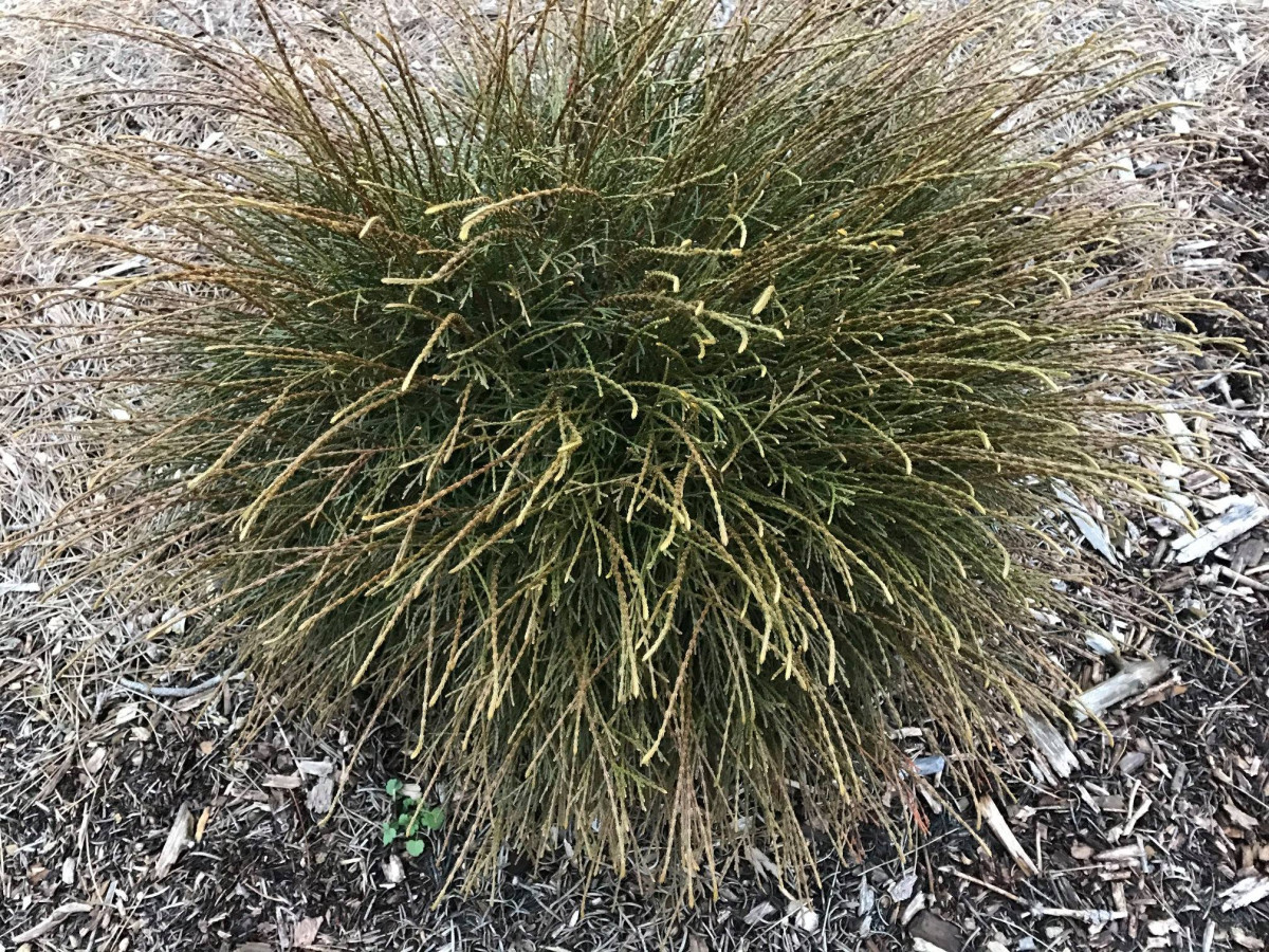 Туя складчатая «Випкорд» (Thuja plicata ‘Whipcord’) с длинными побегами, похожими на верёвочки, издали смотрится злаковой куртинкой. Или круглогодично зелёным фонтанчиком. Уже есть новый сорт — «Голден Випкорд» (Thuja plicata ‘Golden Whipcord’) — золотистый фонтанчик. Морозостойкость исходной формы не ниже −25 °С, так что за привитыми штамбовыми формами, хотя они и невероятно эффектны, гнаться не стоит. Настоящие размеры растений не превышают в высоту 40-50 см.