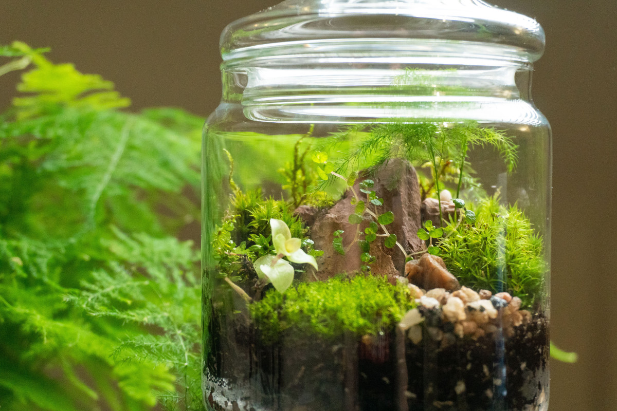 Горшечные цветы можно использовать в качестве подарка зимой, но они не всем нравятся, да и многие из них также выращены в оранжереях. Кроме того, они требуют пересадки и серьезной адаптации к комнатным условиям, а иначе их продолжительность жизни совсем невелика. Модным экологичным подарком для любителя природы стал флорариум. Уход за ним несложен, он изумительно красиво выглядит и уместен как дома, так и в офисном пространстве. А самое главное, создать собственный флорариум или изготовить его в подарок достаточно просто.