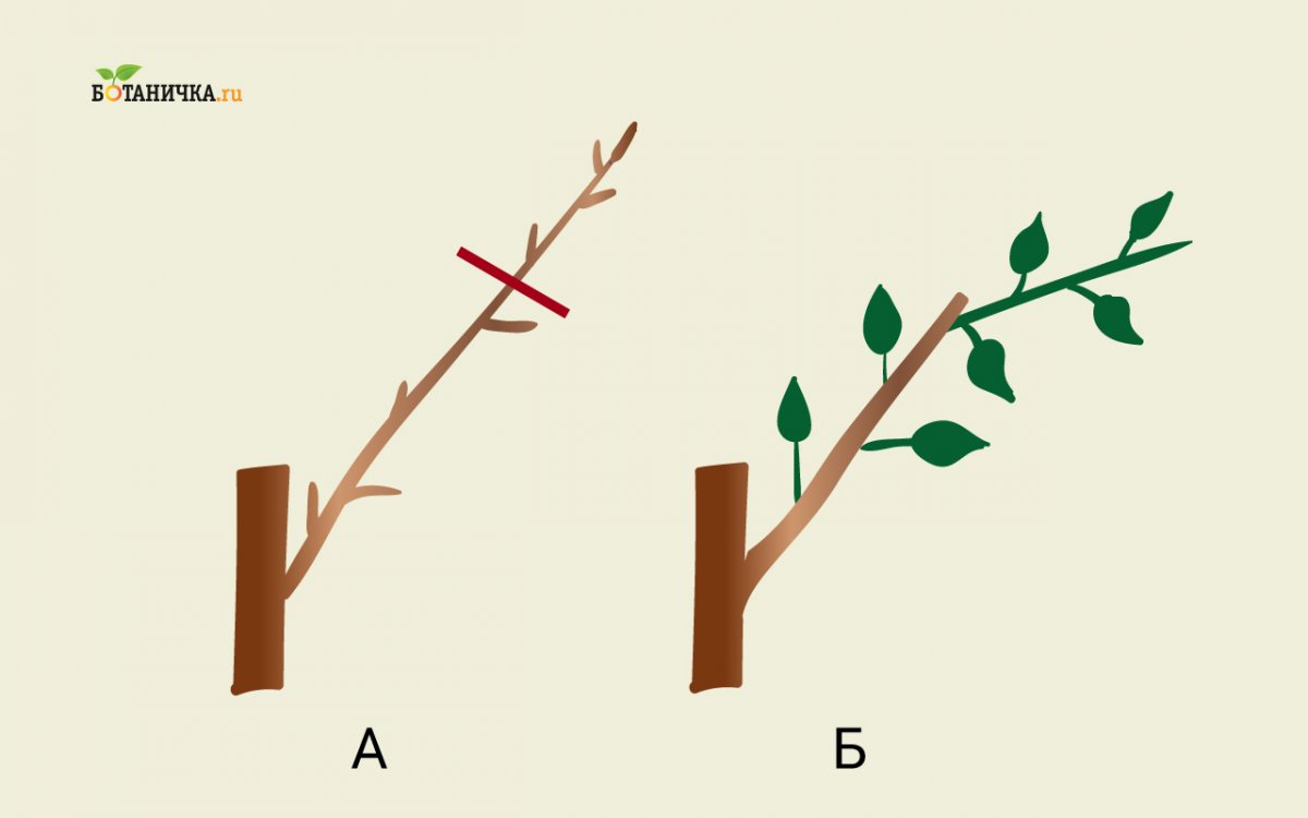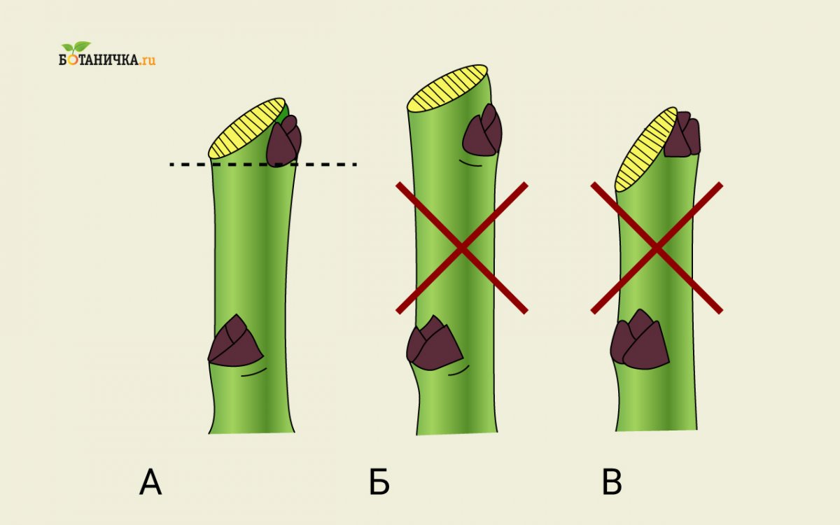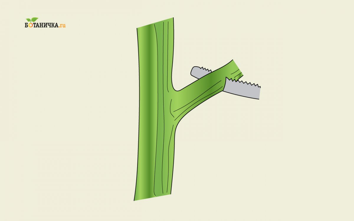 На рисунке снизу левая ветвь имеет правильный метод обрезки, две другие обрезаны неправильно.