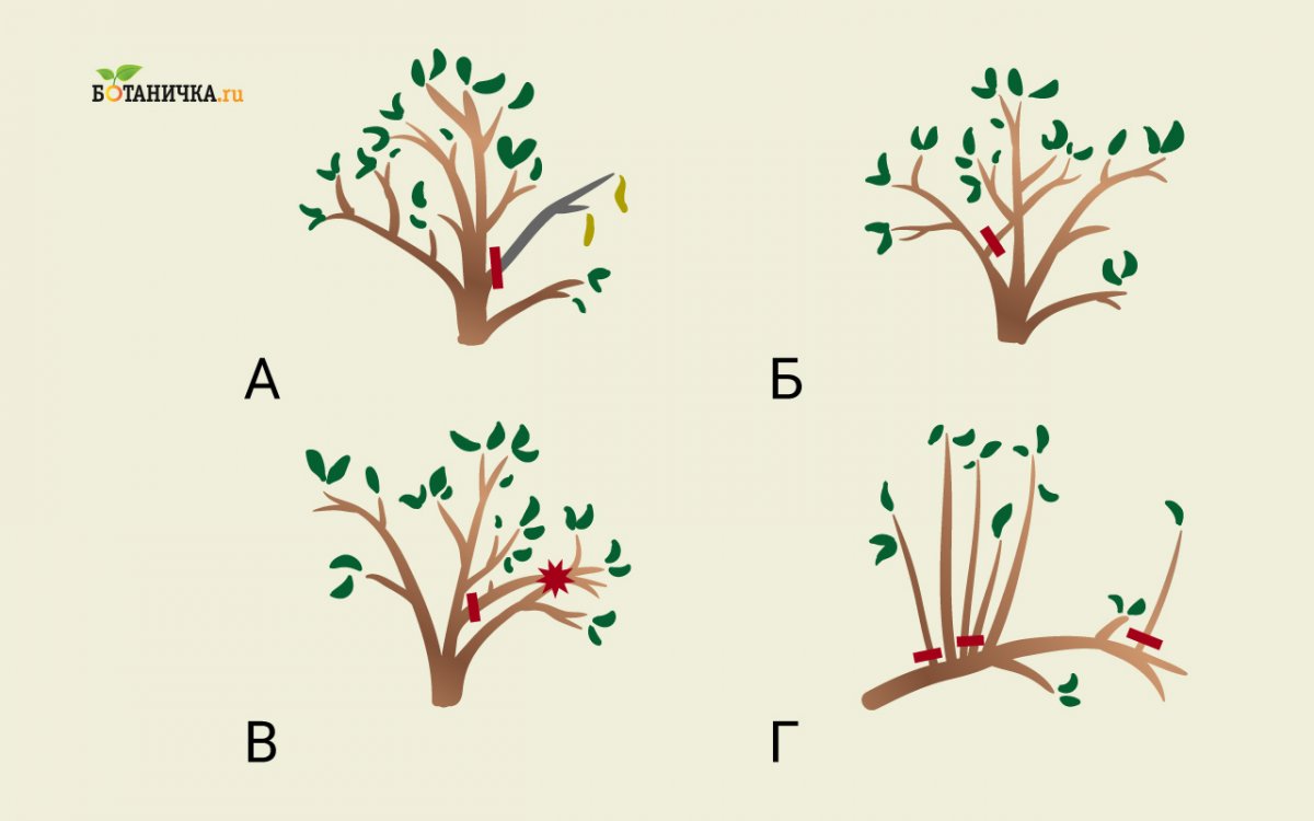 Оставленные веточки укорачивают на 3-5 почек.