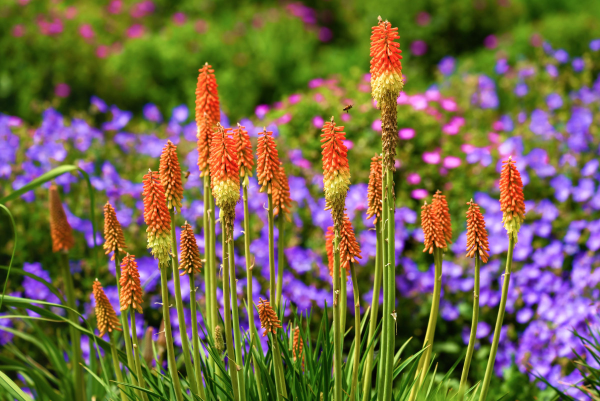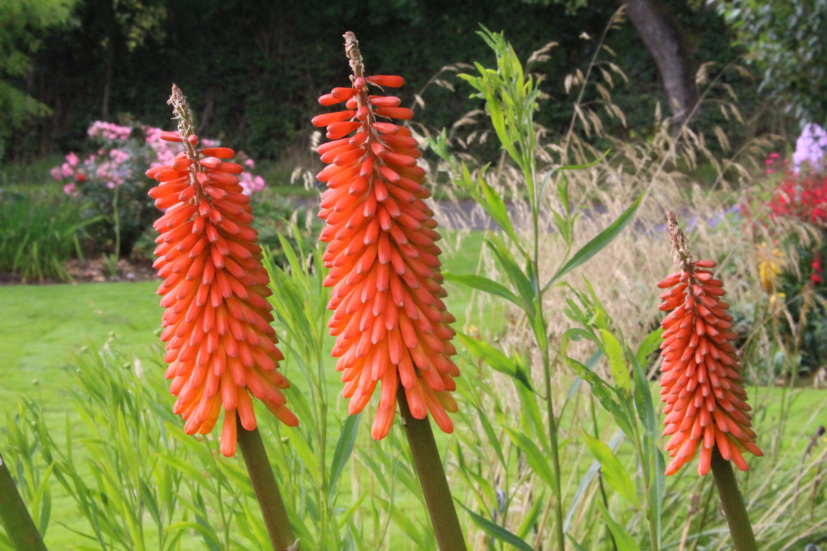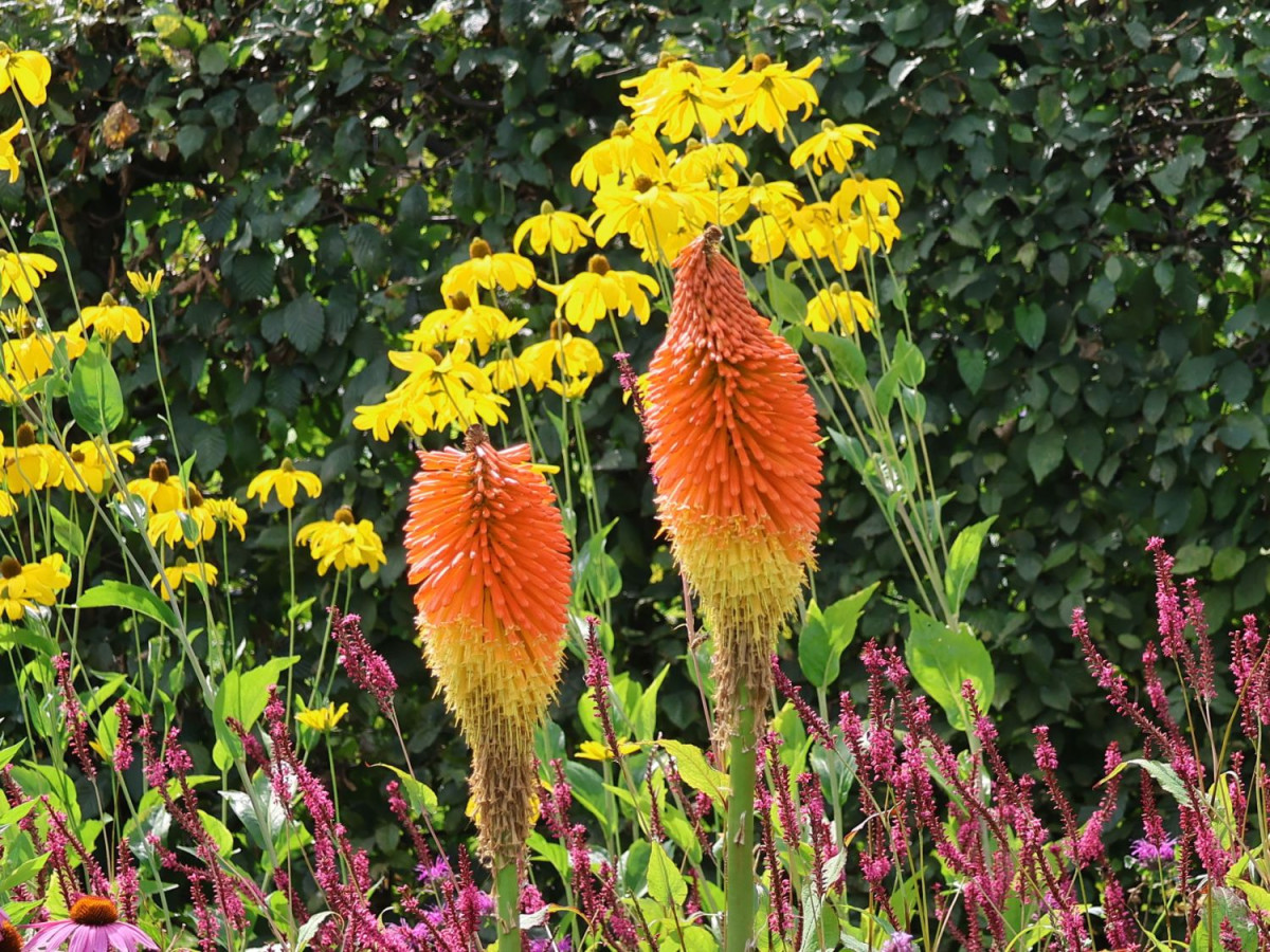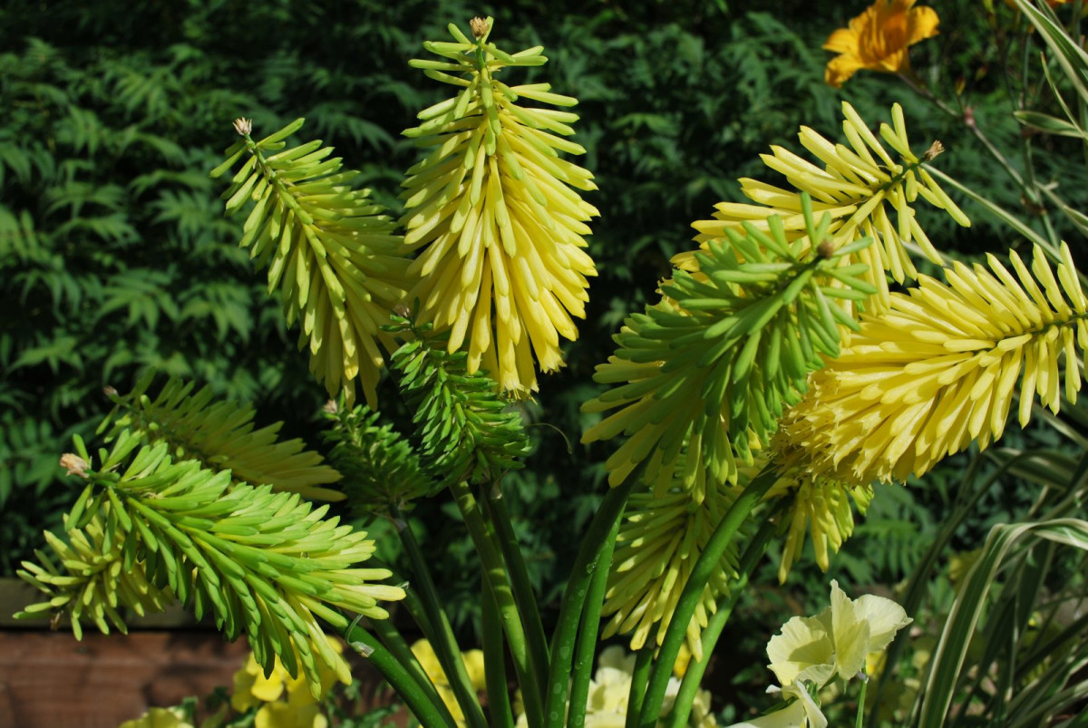 Главная «фишка» книпхофии – необычные и, как правило, двуцветные (из-за разницы окраски бутонов и распустившихся цветков) колосовидные соцветия, раскрывающиеся снизу вверх. Цветовая гамма – оттенки желтого, оранжевого и красного, плюс персиковый, зеленовато-белый и желтовато-зеленый. Высота в цветении – 60-120 см.