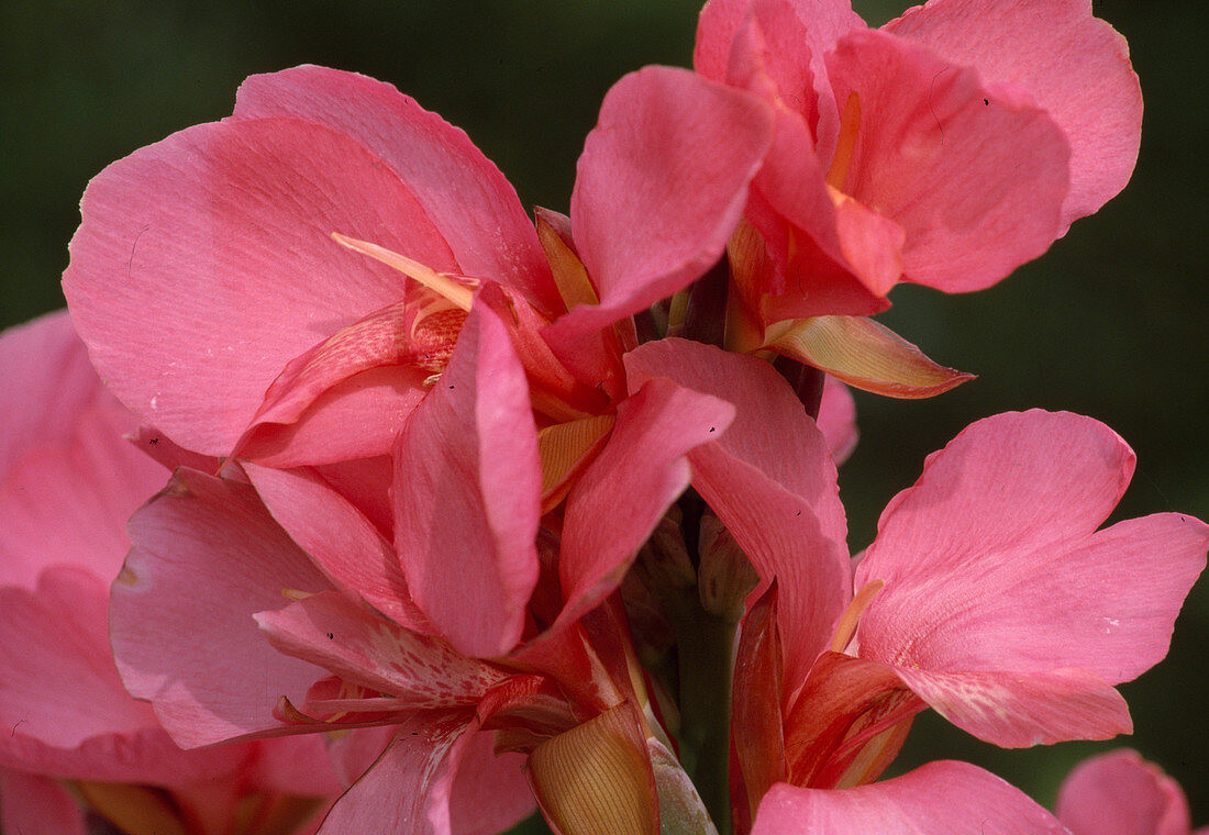 Цветки асимметричные, 4-15 см в диаметре, желтые, оранжевые, красные, двуцветные, с каймой или крапом, реже – розовые, персиковые или белые. В средней полосе канны распускаются в конце июля и радуют цветением до заморозков.
