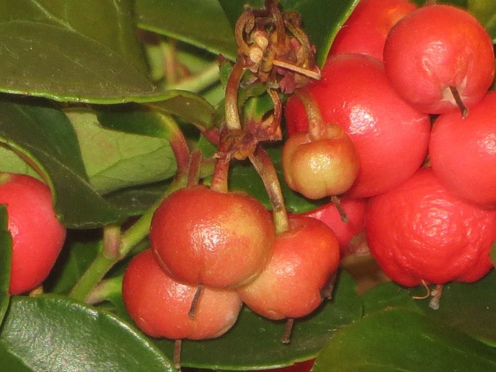 Гаультерия (Gaultheria) — вечнозеленый многолетник из семейства Вересковые, который сначала привлекает внимание плотными ярко-зелеными листочками. Они бывают крошечными (длиной до 1,5 см) или покрупнее (3-4 см). В июне гаультерия зацветает мелкими белыми или розоватыми цветочками, очень похожими на поникающие кувшинчики и издающими приятный тонкий аромат. К сентябрю-октябрю на месте увядших цветков гаультерии созревают крупные (до 1 см) красные, реже голубоватые, белые или лиловые плоды, которые могут держаться на веточках всю зиму.