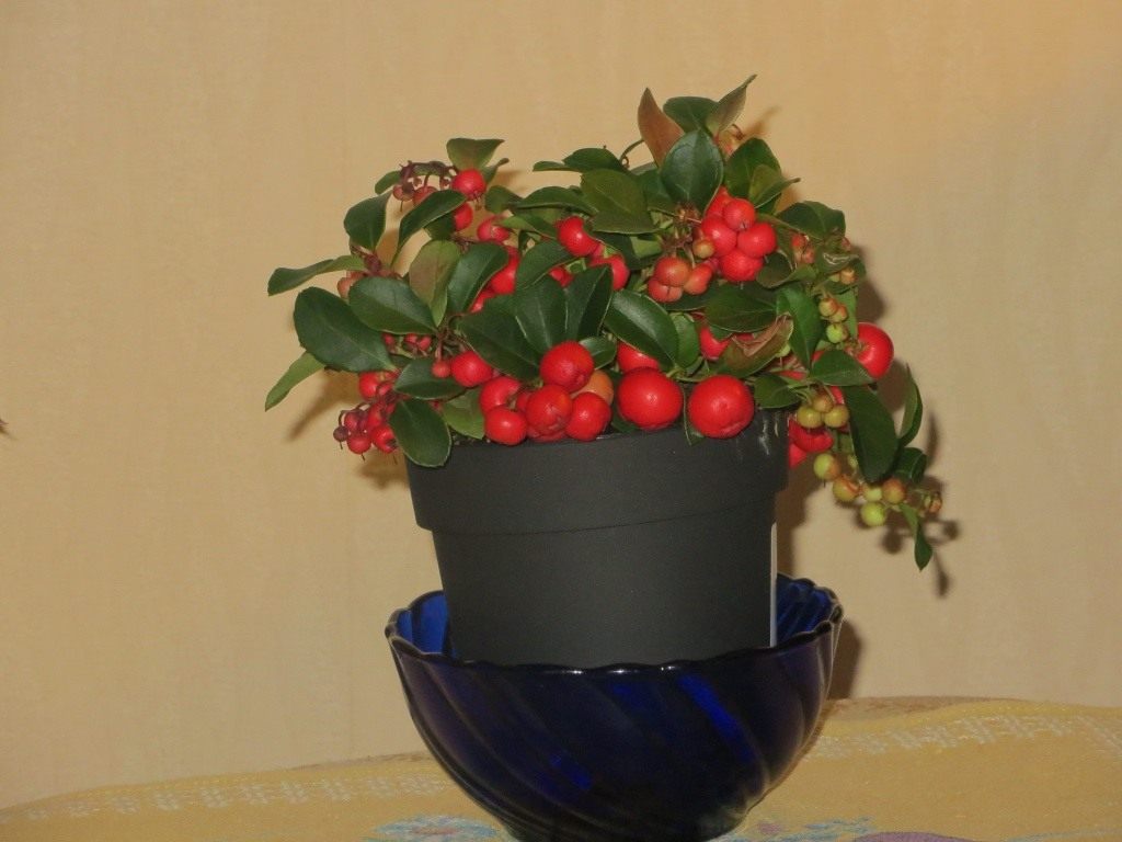 В садовых центрах и в небольших цветочных магазинчиках часто можно увидеть интересное растение, усыпанное нарядными сверкающими плодами-ягодами в окружении округлых блестящих листьев. Ягоды, внешне очень похожие на всеми любимую клюкву, всего лишь яркий декоративный наряд редкого тропического растения, называемого гаультерия. В течение всего года это растение отлично выглядит, а также прекрасно себя чувствует и в комнатных условиях, и на улице в саду. Если приобрести гаультерию осенью, то она хорошо перезимует на застекленной лоджии или балконе. Весной гаультерию можно переселить на улицу: в альпинарий или на клумбу рядом с рододендронами или невысокими хвойниками.
