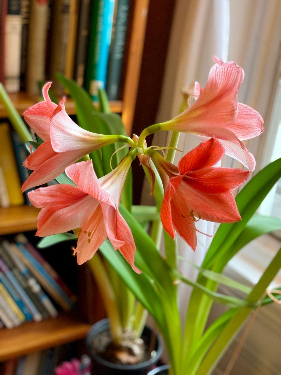 После пересадки гиппеаструмы содержат в теплых комнатах, при температуре выше 18 градусов (оптимально +20…+24 градуса). Чтобы продлить цветение и любоваться на прекрасные цветки максимальный срок, после распускания цветков при возможности лучше понизить температуру — до 18 или хотя бы 20 градусов.