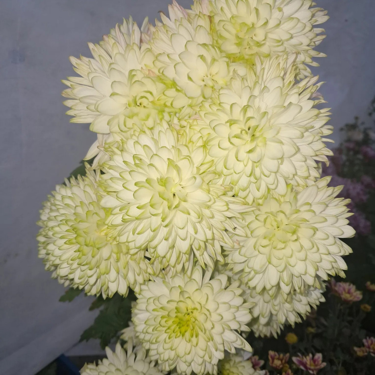 «Этруско Вайт» — это белоцветковая разновидность хризантемы «Этруско» с легко узнаваемый светло-сиреневым оттенком. Хризантема «Этруско Вайт» — срезочный сорт с непревзойденной стойкостью, способный сохраняться в вазе до семи дней.