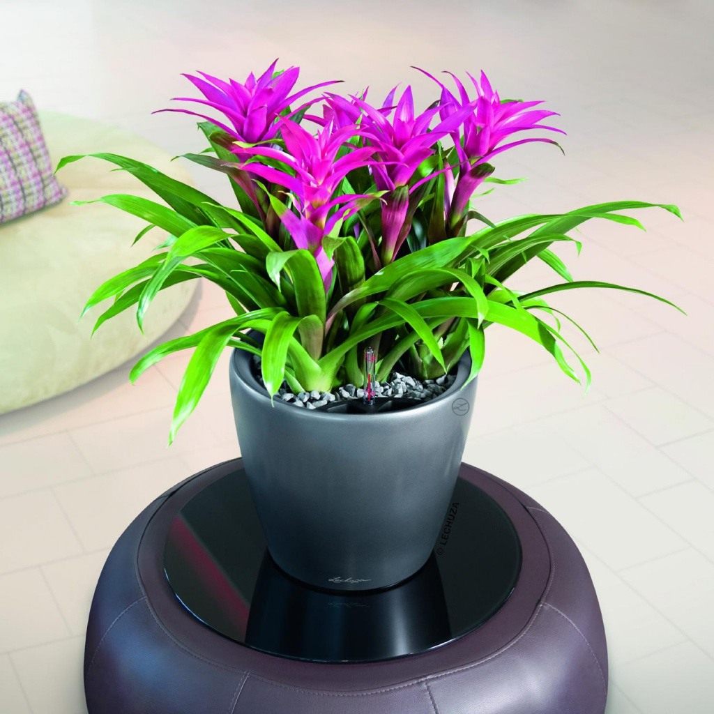 Все, кого интересуют бромелевые и вообще, тропические растения, можете обращаться с вопросами. «После пересадки зацветвет через 3 года»! Абсолютно неправильно! Коротко всё же опишу этот момент! Вы купили цветок и он отцвёл. Оставьте его до тех пор, пока он не даст боковые побеги Старую розетку цветка нельзя выбрасывать ни в коем случае! она является питанием для молодых растений! Единственно, можно удалить сам цветонос, когда он уже совсем потеряет приглядный вид! Только после того, как молодые растения хорошо подрастут, можно пересаживать. Можете посмотреть мои растения на моей странице в Одноклассниках. О поливе! В природе эти растения как раз зимой больше всего и поливают, потому что зимой начинается сезон дождей! Гузмания перед цветением нуждается в том, чтобы стоять в воде! Мои цветы стоят в большом горшке, а горшок в ведре! Цветут около года. Эти растения не имеют четко выраженного лета — зима, цветут в любое время года. Одна из главных особенностей, бромелевые любят тесные горшки. У меня в цветут в одном горшке сразу три цветка!