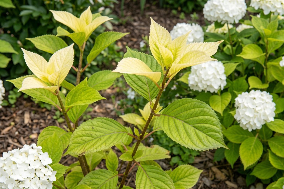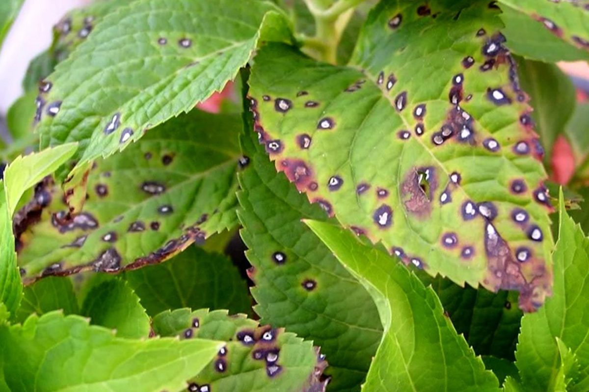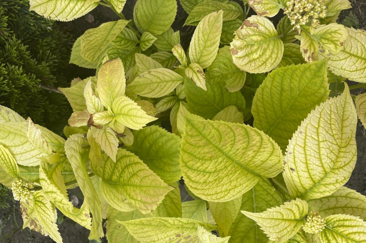 У гортензии могут быть и другие заболевания, внешне напоминающие хлороз. К сожалению, не всегда их просто визуально различить, так как поражения листьев бывают очень похожими.