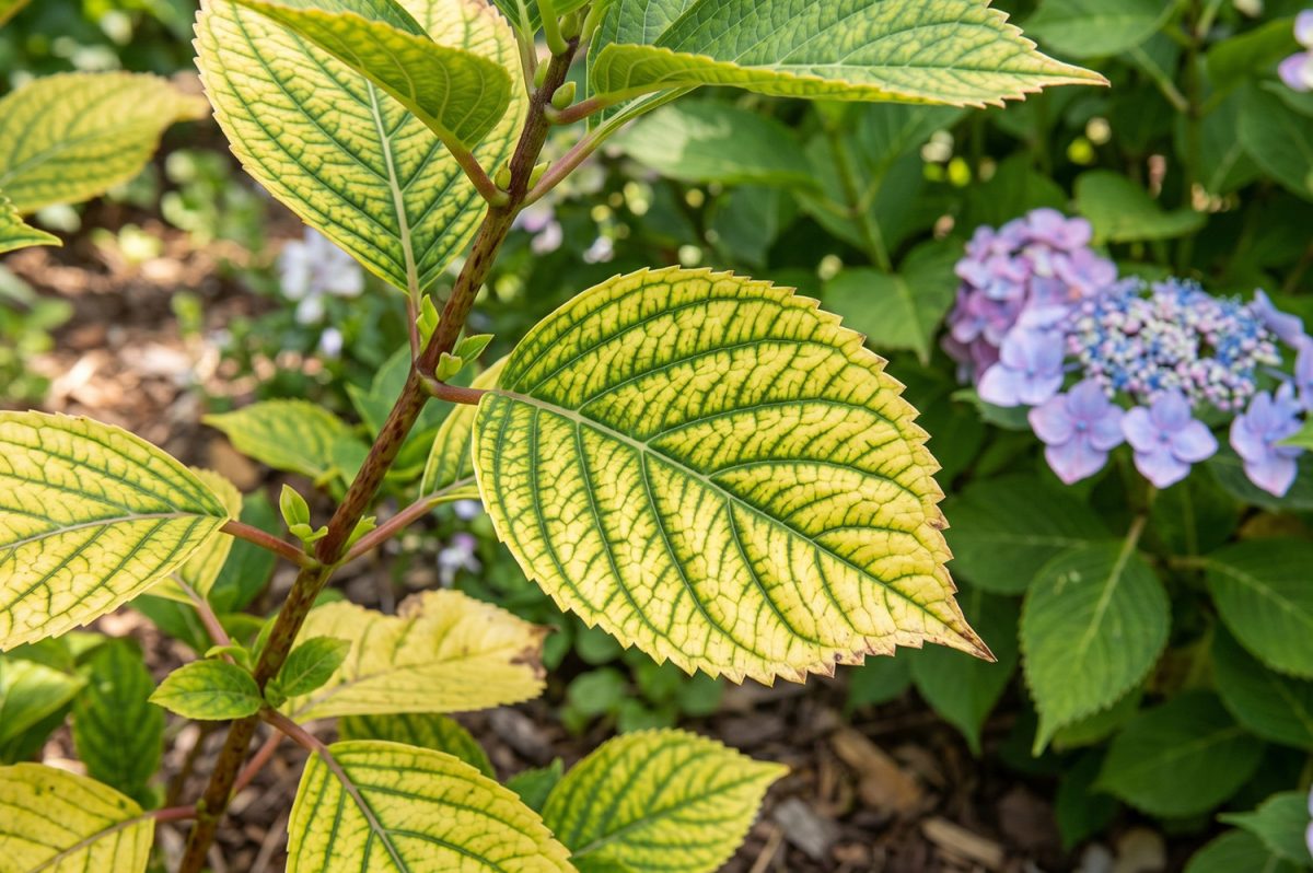 От нехватки магния нередко страдают гортензии, растущие на лёгких супесчаных или песчаных почвах.