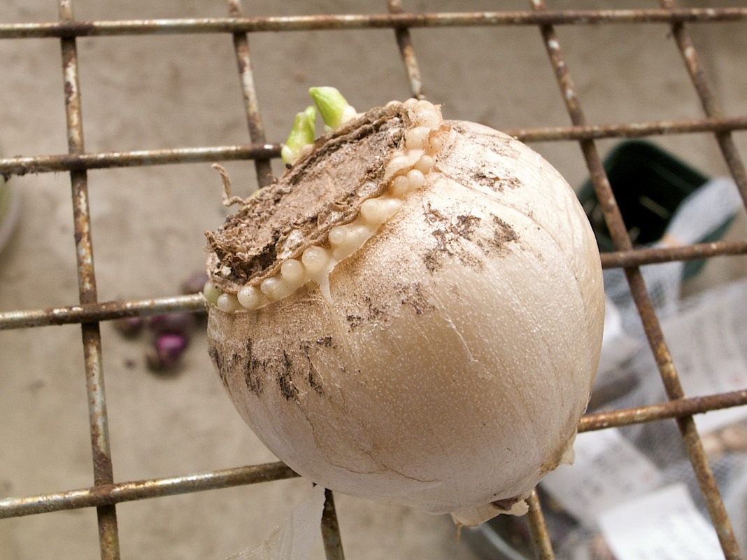 Материнскую луковицу в том же перевернутом положении высаживают в горшок так, чтобы детки были слегка прикрыты субстратом. Растения закаливают и далее держат в холодном парнике. Весной луковички тронутся в рост и образуют листья, а старая луковица постепенно разрушится. В конце вегетационного сезона молодые луковицы выкапывают, разделяют и рассаживают для доращивания. Молодые растения могут зацвести через 3-4 года.