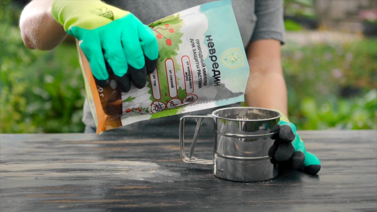 Опрыскивание. Растения обрабатывают суспензией (10%), приготовленной из чистого «Невредина», разведенного водой, — 100 г/1 л. Процедуру проводят дважды, тщательно орошая как верхнюю, так и нижнюю сторону листовых пластин.
