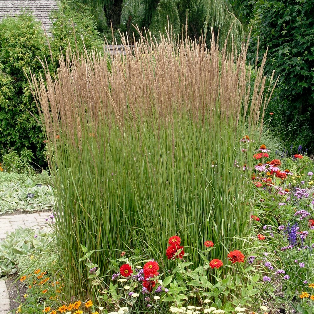Компанию и конкуренцию любому из высоких злаков с легкостью составит вейник остроцветковый (Calamagrostis acutiflora) — красивый и крупный, необычайно дерзкий злак с прямыми, устремленными вверх листьями, высота отдельных сортов которого способна достигать 150 см. Он кажется стройным и вносит удивительный эффект подсветки: верх куртины с прямыми метелками как будто всегда освещает солнышко.