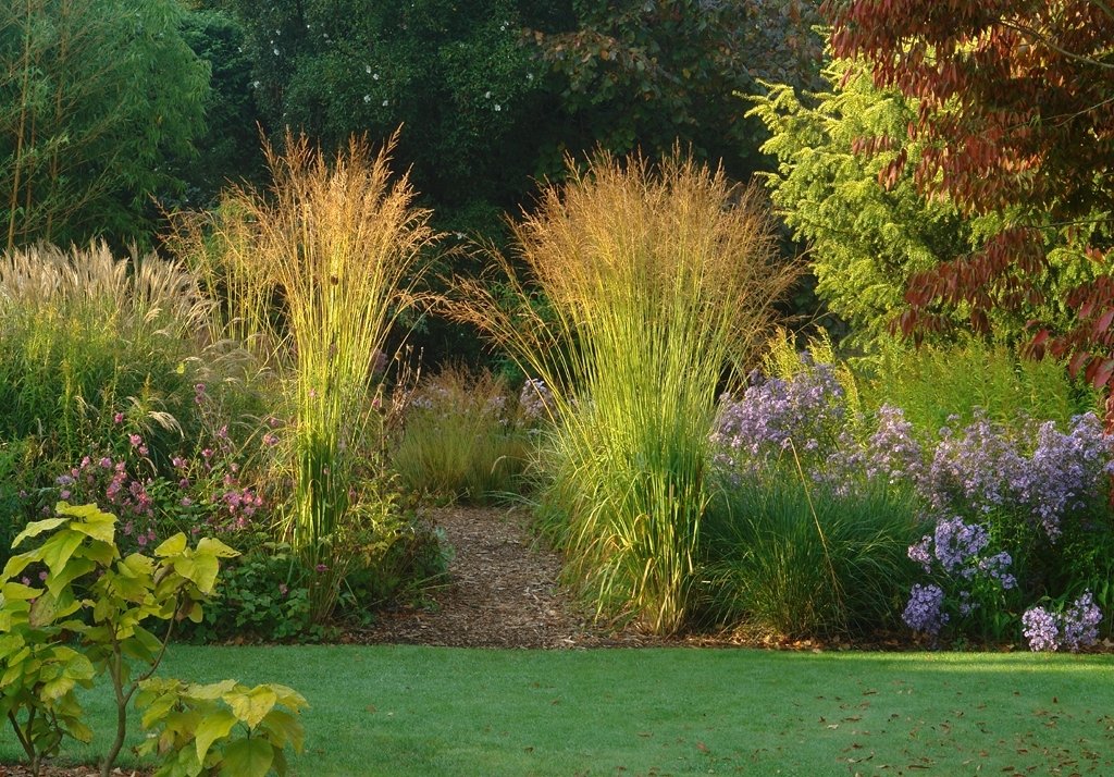 Для отделения частей сада, которые нуждаются в мягком, но надежном средстве изоляции от любопытных глаз и в создании психологического комфорта. Вы наверняка отмечали, как в цветниках злаки кажутся непроницаемой, роскошной завесой, виртуозным вертикальным акцентом. Именно этот их талант и можно использовать для зонирования.