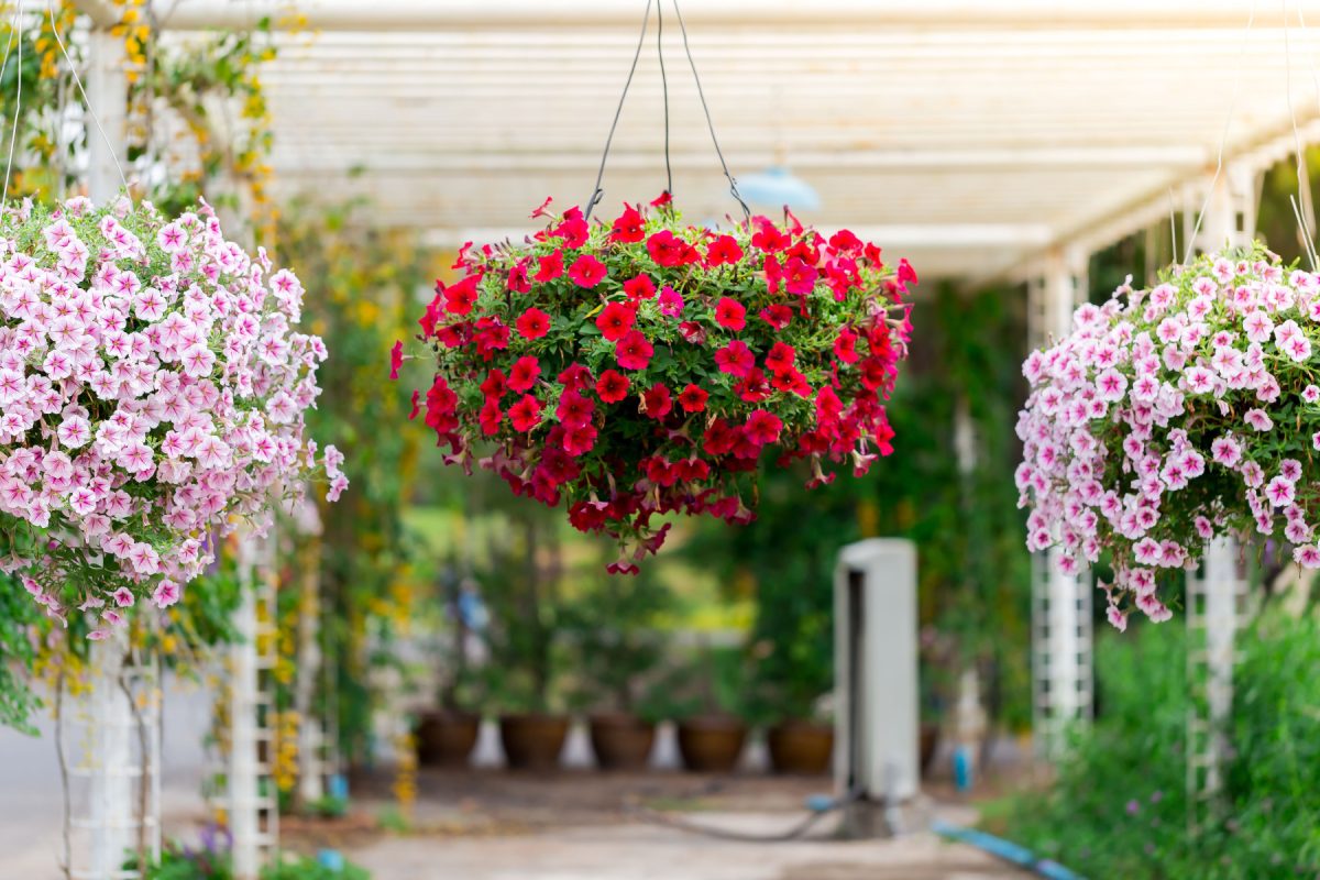 Во второй половине лета (в конце июля или начале августа) можно укорачивать побеги, сильно отросшие и потерявшие в нижней части листья – до высоты в 15-20 см. Такой приём у ампельных и каскадных петуний способствует восстановлению декоративности кустов и стимулирует повторную волну цветения.