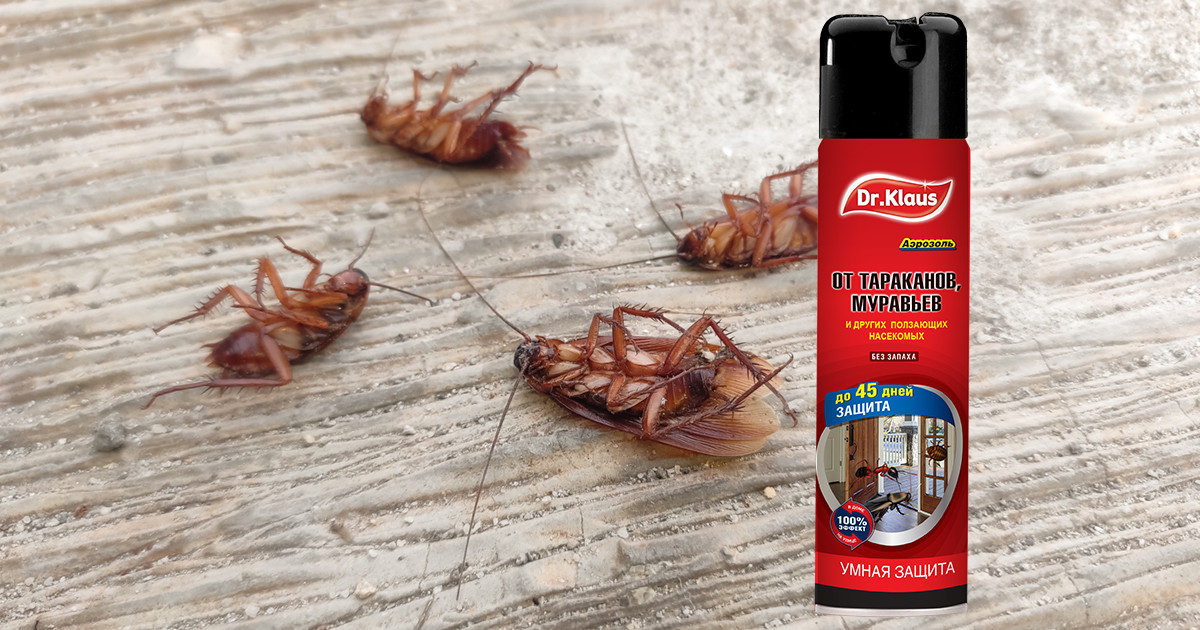 При обнаружении скоплений вредителей в каких-то локальных точках нет ничего лучше аэрозолей и спреев. Например, если при подготовке к искореняющим мероприятиям найдены гнёзда с тараканами разных возрастов. Такие места нужно сразу обработать аэрозолем Dr.Klaus.