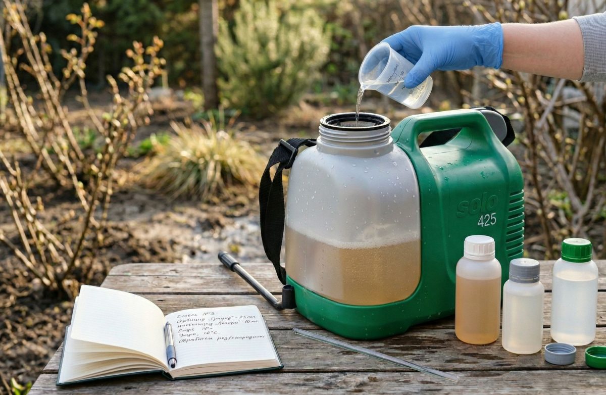 - Остаток смеси – утилизация, не хранение. Если в баке осталась смесь, не оставляйте на завтра. Вылейте в яму, выкопанную подальше от грядок, колодцев и водоёмов. Или в специально отведённое место для химии. Не в компост, не под деревья, не в канаву у забора.