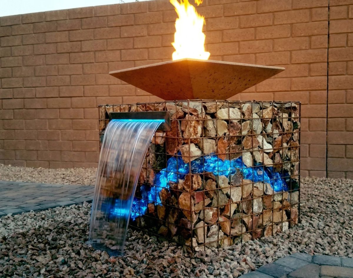 Для колодцев габионные конструкции выступают в качестве «облицовки», в которую как в кокон заключен источник воды, т.е. габионы носят декоративный характер. С фонтанами интереснее. Первый вариант – сухой фонтан: сквозь габионную конструкцию, вкопанную на уровне грунта в качестве основания фонтана, вода будет естественным образом просачиваться. Кроме того, это выглядит очень эстетично. С другой стороны, «тело» габиона можно использовать, чтобы разместить трубу/шланг с фонтанной насадкой. Такой фонтан-габион может быть отдельно стоящим арт-объектом, над которым поднимается водная струя, или частью подпорной стенки (вода будет как бы прорываться сквозь габион небольшим каскадом).