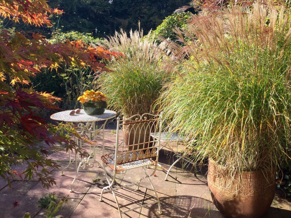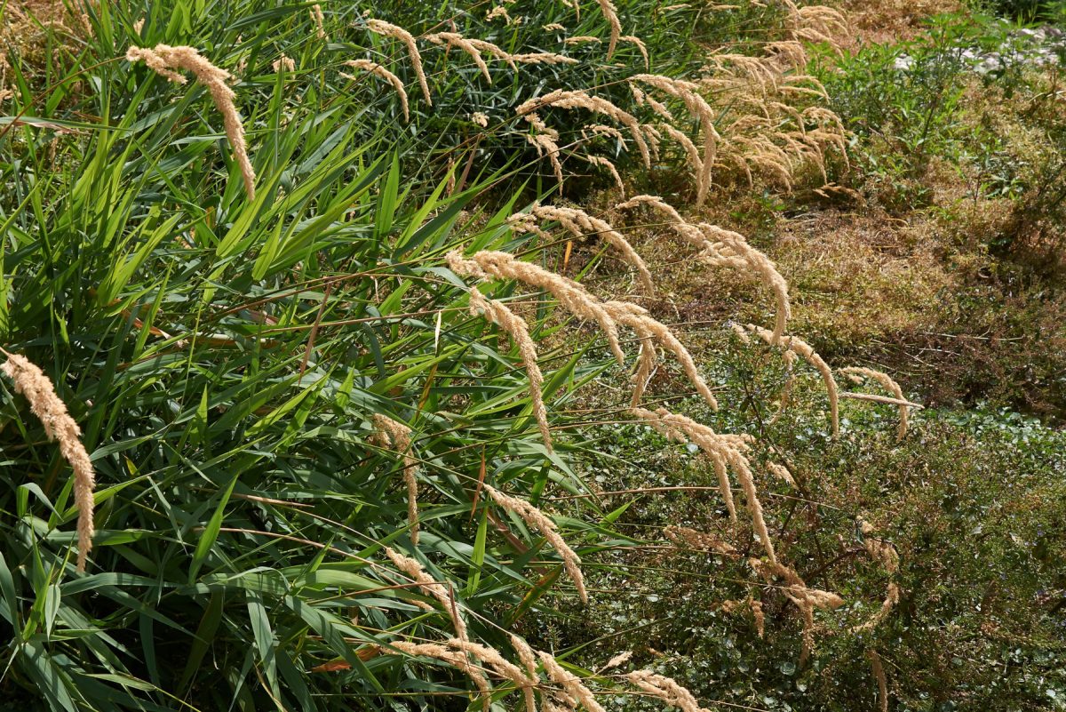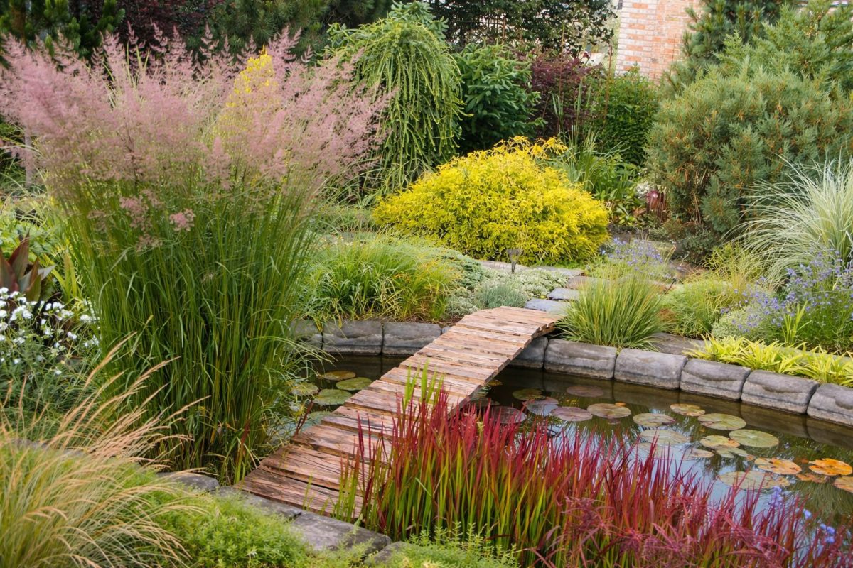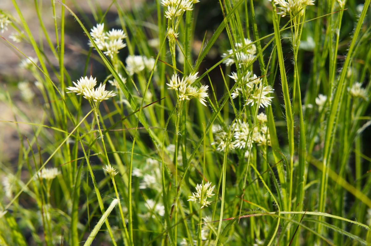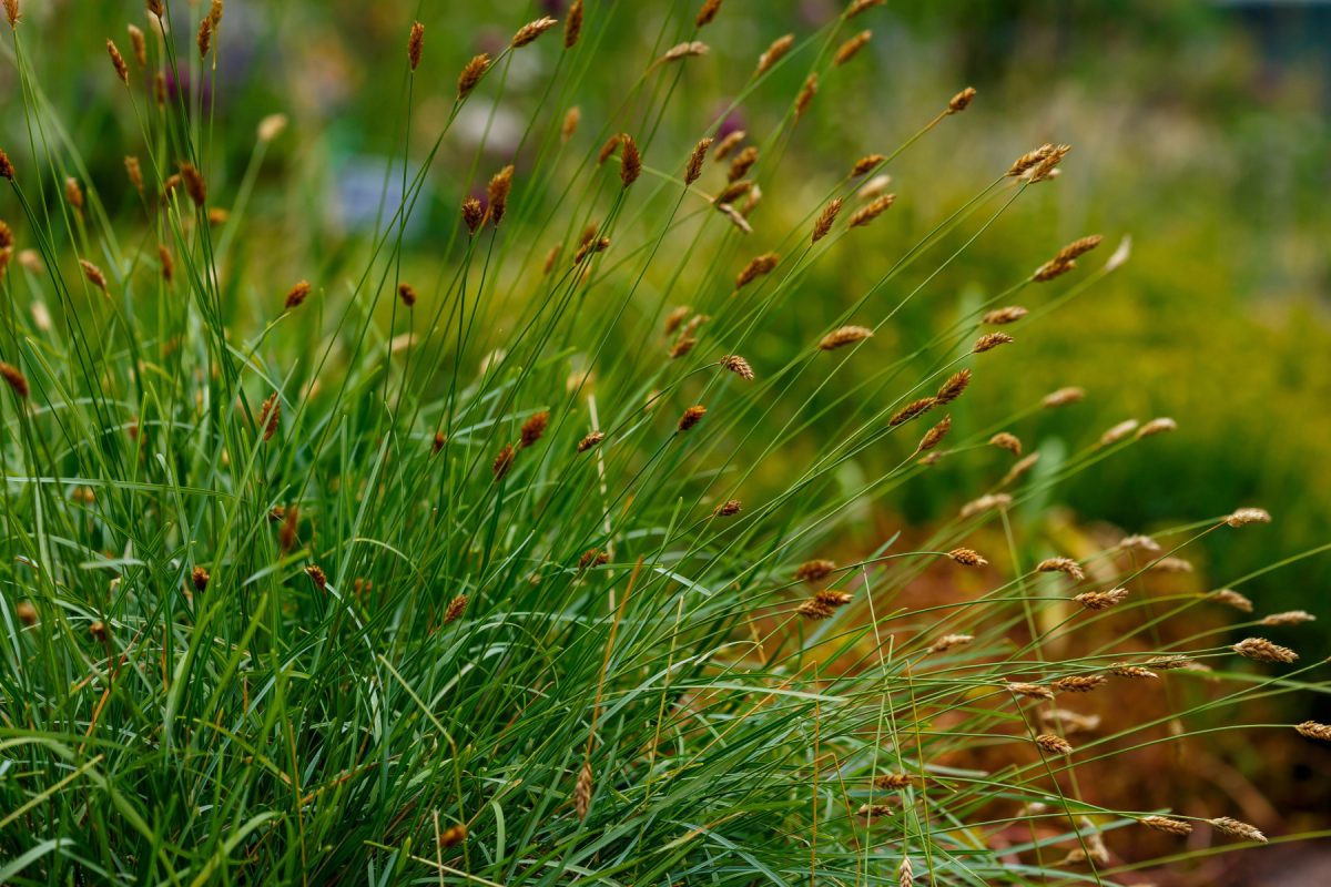 Подходящие злаки: мискантусы, щучка дернистая, лисохвост луговой, молиния голубая, двукисточник тростниковый, некоторые осоки.