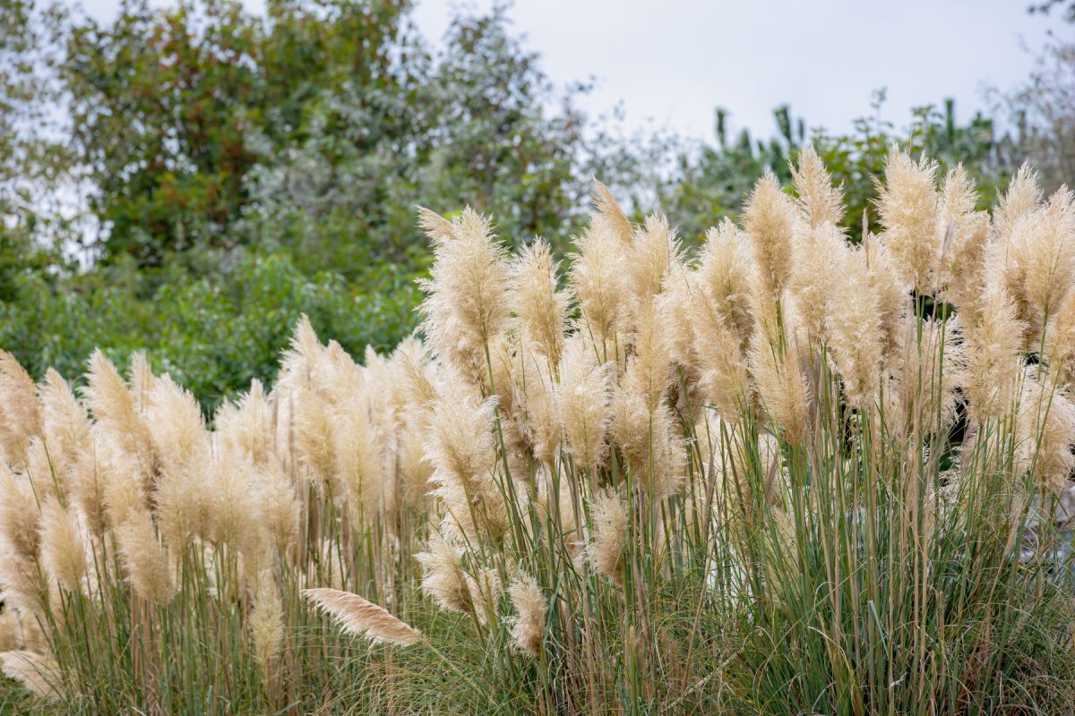 Подходящие злаки: мискантусы, вейник остроцветковый, молиния голубая и тростниковая, просо прутьевидное, пырейник канадский, щучка дернистая, лисохвост луговой, для более южных регионов — кортадерия двудомная и пеннисетум лисохвостный.