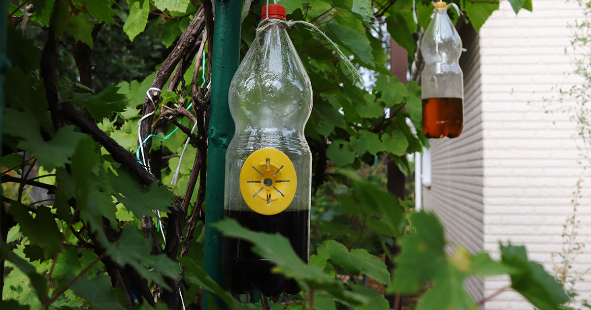 Но периодически смотрите, в какой стадии находится этот процесс, так как сильный спиртовой или плесневый, гнилостный запах уже не привлекает, а отпугивает ос. Поэтому лакомство в жаркую погоду стоит регулярно обновлять. Иногда стенки ловушек дополнительно смазывают непахучим растительным маслом, чтобы осам было ещё сложнее выбраться из западни.