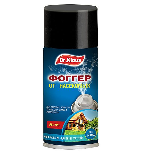 Естественно, в закрытых помещениях нанесение жидкого средства сопряжено с очевидными проблемами. Но для них под маркой Dr.Klaus выпускается ещё один высокоэффективный и удобный продукт – фоггер. Просто устанавливаете баллончик в помещении, закрываете окна и двери и нажимаете на клавишу. Смесь инсектицидов за пару часов очистит чердак, комнату или сарай площадью до 100 квадратов от всех насекомых, ну и, конечно, от ос. Что важно, после обработки не остаётся никакого запаха, а помещение достаточно только слегка проветрить.