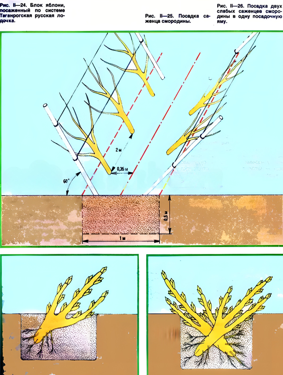 Под наклоном градусов в 15 хорошо высаживать саженцы редких сортов — отрастающие веточки легко прикапывать для получения отводков, сохранения и размножения редкого сорта. Прочие плюсы те же, что и при посадке «лодочкой: низкорослость, раннее вступление в плодоношение, ветроустойчивость.