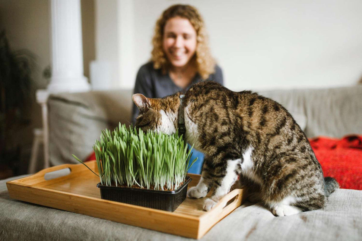 Почти все котики обожают есть свежую зелёную травку. Чтобы сделать питомца счастливее, не отказывайте ему в таком удовольствии. Посадите для своего усатого хотя бы небольшой горшочек с травой. Семена лучше приобрести в зоомагазине. Поедание свежей травы не только доставляет кошкам удовольствие, но и улучшает пищеварение.