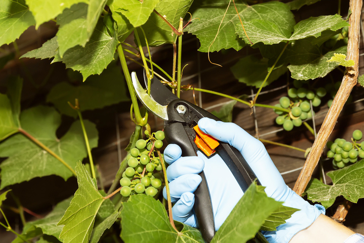 Сбор урожая винограда также стартует летом. Первые гроздья ранних сортов на стол попадают еще в середине лета, хотя основная виноградная пора — август, когда в воздухе уже чувствуется дыхание осени. В сборе винограда нет ничего сложного. Главное, аккуратно срезать гроздья ножницами или специальным секатором и также аккуратно их транспортировать.