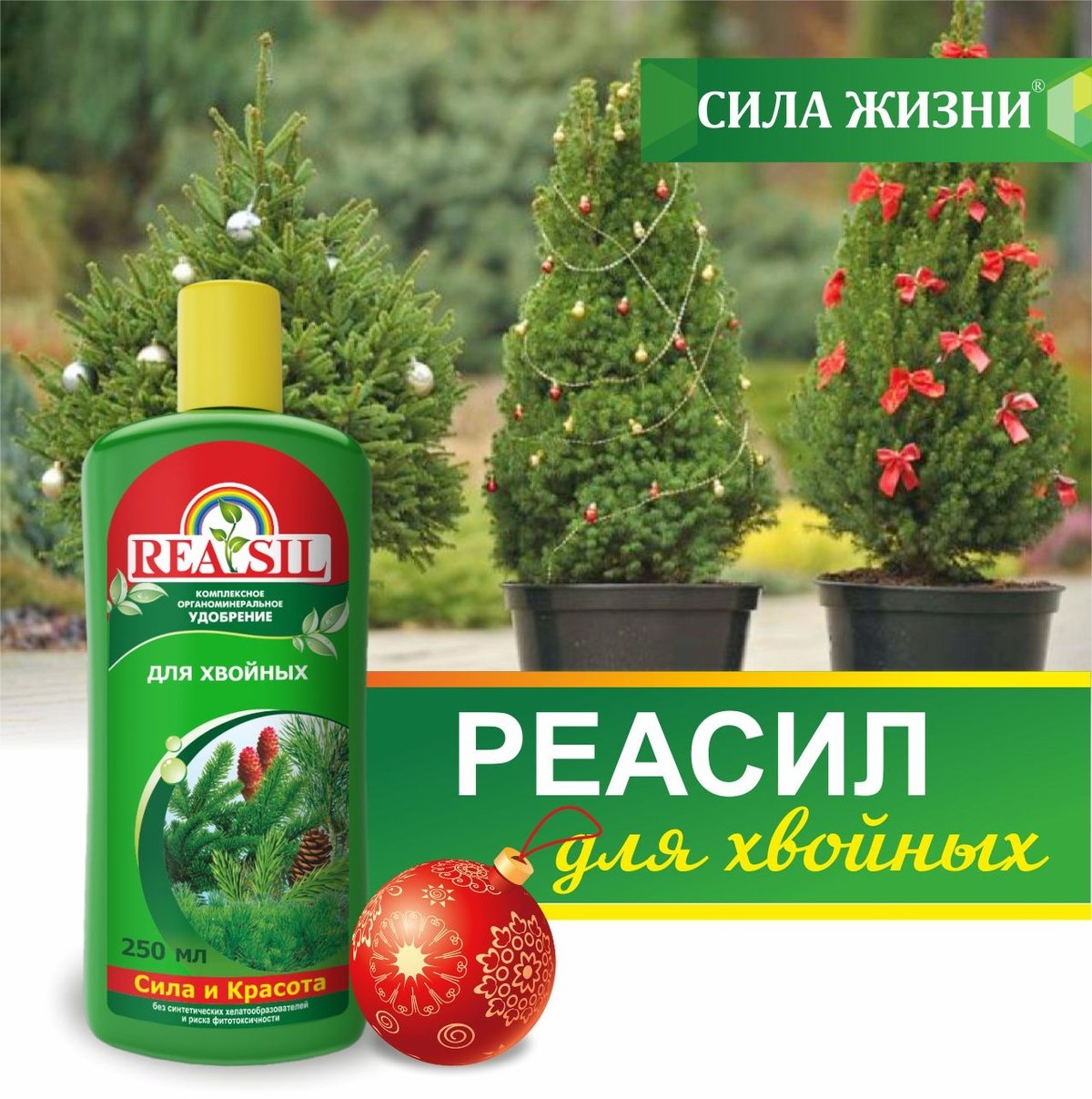 - Как и в случае со всяким комнатным растением, елочку необходимо поливать и опрыскивать. Если делать это обычной мягкой водой (дождевой или талой), то такой уход вполне традиционен. Но внимание! Если вы сторонник лучшего из возможного, то ваша кладовка продвинутого флориста срочно нуждается в пополнении – комплексном органо-минеральном удобрении «Реасил» для хвойных растений.