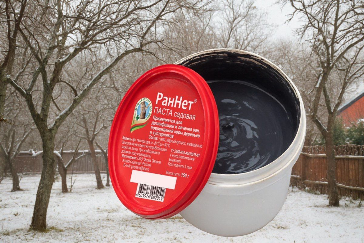 Во-первых, эта паста удобно наносится и хорошо прилипает к коре и открытой древесине. Она не теряет пластичность в холодную погоду и не растрескивается на жаре, поэтому действует, как своеобразная медицинская повязка, и физически препятствует загрязнению и повторному заражению ран. Во-вторых, входящее фунгицидное соединение отлично подавляет патогенную микрофлору, уже занесённую в раны. В-третьих, гумат способствует активному формированию каллусной ткани, затягивающей повреждённые места. Таким образом, паста-замазка «РанНет» сочетает в себе основные качества сразу трёх разных средств. Наносить её нужно сразу после обрезки ветвей на свежие спилы или на места, зачищенные от мёртвых и больных тканей.