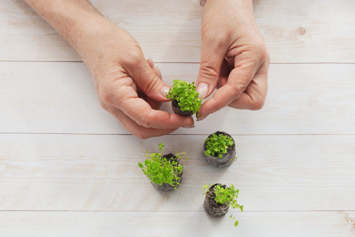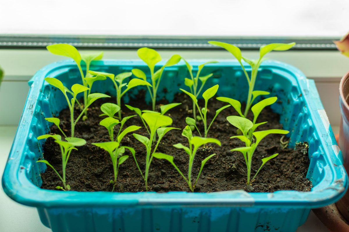 Пикировка необязательна. Можно сразу рассадить пучками по 3–5 растений в стаканчики, когда всходы подрастут до 1–2 см. Или выращивать в общей емкости до высадки группами. Когда растения достигнут 3–4 см, прищипните верхушки для кущения. Подкормки раз в две недели слабым раствором, начиная через месяц после всходов.