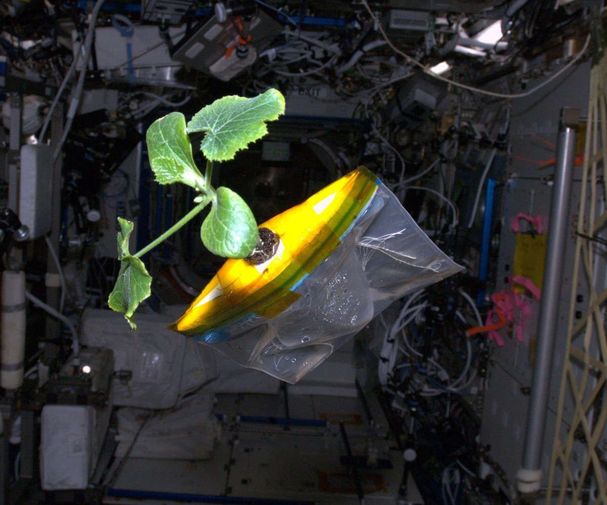 Ещё одним заметным прорывом было цуккини. Вырастили его в 2012 году на МКС. Сеянцы выращивались в специальном питательном растворе с использованием аэропоники. В качестве среды переноса служила вода в виде мелкодисперсного тумана. Аэропоника позволила сократить объем используемой воды. Существует целый блок Дональда Петтита о выращивании космического цуккини.